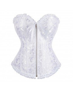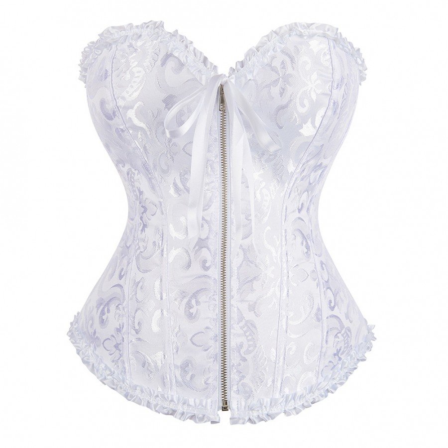 Klassinen Valkoinen Ylärintakorsetti Vetoketju Jakardi Korsetti