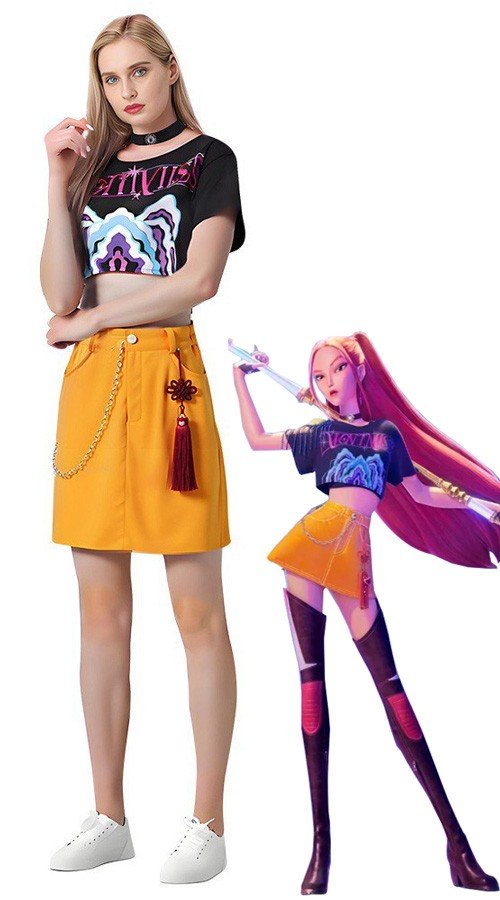 Deluxe Kpop Demon Hunters Mira Asu Aikuisille ja Lapsille K-Pop Demon Hunters Asut Mira Peruukki